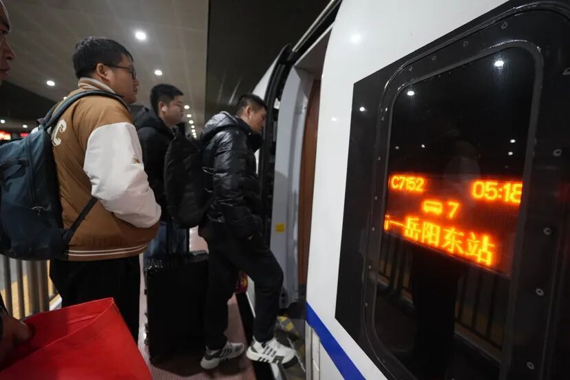 ▲2026年2月2日5时29分,C7152次列车缓缓驶离深圳北站,开往岳阳方向,这是2026年春运深圳北站开出的首趟旅客列车。